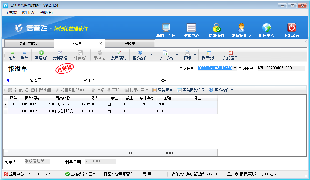 倉庫管理軟件中報溢單、報損單的使用方法