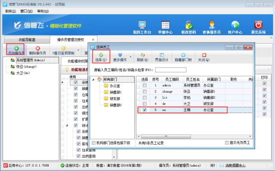 信管飛RMS軟件如何新增操作員并設置操作員權限?
