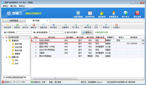 然后關閉修改客戶信息界面后,客戶信息中所屬業務員已修改成功。如下圖所示: