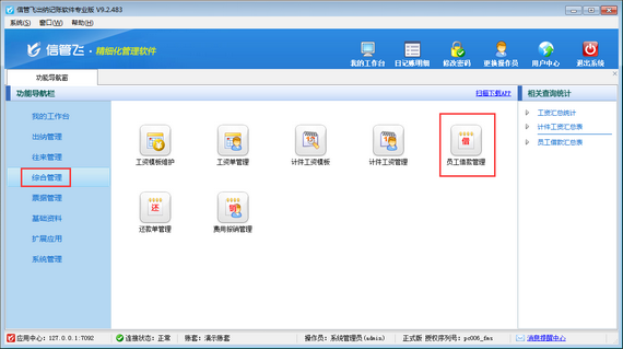 在功能導航窗點擊“綜合管理”—》“員工借款管理”即可進入“員工借款管理”界面,如下圖所示: