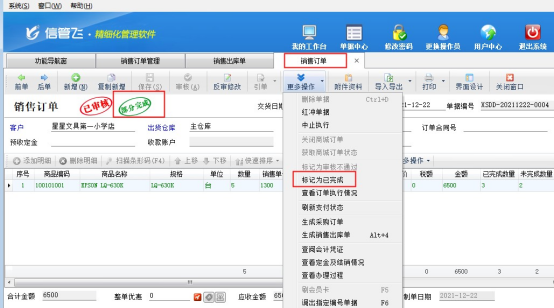 如存在引用部分訂單數(shù)量,之后不再引用此訂單開單,可手動標記訂單為已完成狀態(tài)。如下圖: