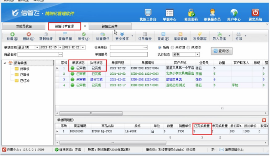 信管飛RMS軟件、信管飛送貨單軟件等都支持先開訂單,出庫單可引用訂單開單,出庫單審核完成引用的訂單執(zhí)行狀態(tài)會自動更新,執(zhí)行狀態(tài)更新情況:出庫數(shù)量<訂單數(shù)量,訂單執(zhí)行狀態(tài)變?yōu)椴糠滞瓿桑鰩鞌?shù)量=訂單數(shù)量,訂單執(zhí)行狀態(tài)變?yōu)橐淹瓿伞?/P>