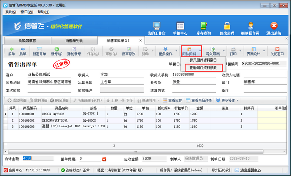 信管飛RMS軟件是進銷存一體化的軟件,支持開單上傳附件資料管理單據附件,本篇文章以信管飛RMS專業版為例介紹一下如何設置打開銷售出庫單可直接查看附件資料窗口?