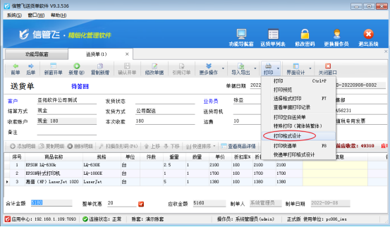 歡迎下載試用可調整模板合并打印的開單軟件:信管飛送貨單軟件