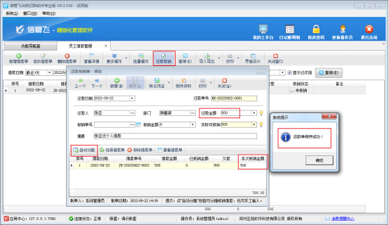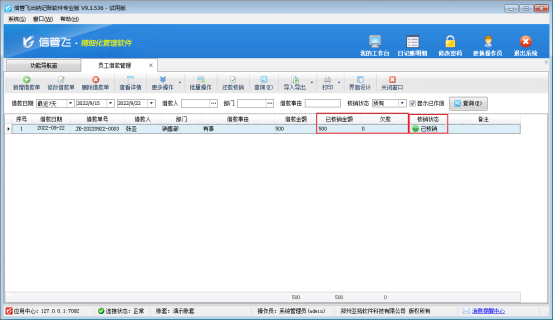 出納記賬軟件如何在員工借款管理界面進(jìn)行還款核銷?