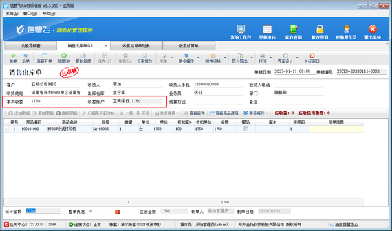 收款結算單可用于登記收款信息,并結銷應收款記錄,信管飛軟件支持在開銷售出庫單時直接輸入本次收款金額,銷售出庫單審核后軟件會自動生成收款結算單并結銷該單據產生的應收款。