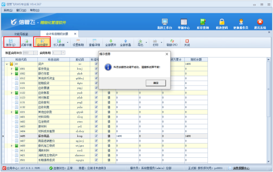 引入數據后,點擊工具欄“自動調平”按鈕進行調平操作,調平后可點擊“試算平衡”,沒有問題點擊“保存”按鈕,保存設置,如下圖所示: