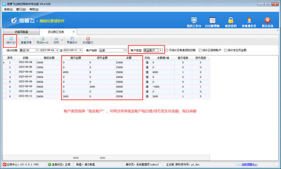 出納記賬軟件如何查詢每日借/貸方發生總金額?