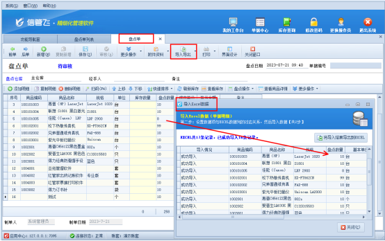 信管飛RMS軟件如何通過Excel批量導入盤點數量?