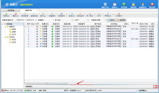 第一種情況:單據明細欄隱藏,進入列表界面,軟件右下角顯示圖標,代表明細欄被隱藏了,點擊右下角 圖標,顯示單據明細欄,即可自動跳出明細欄界面。
