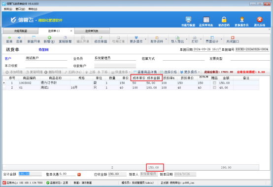 設(shè)置完成后,新開單保存,重新打開送貨單列表,即可顯示成本金額及其合計。