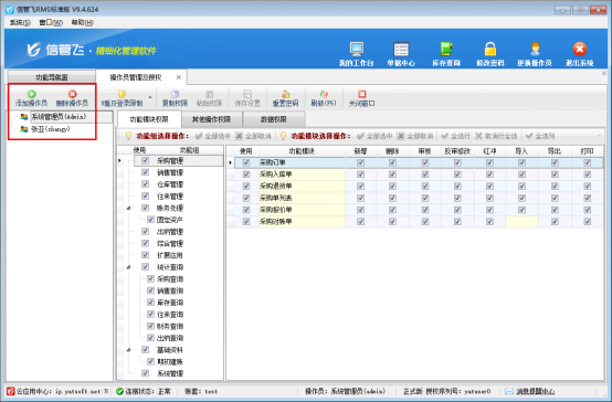 信管飛RMS軟件等都支持設置多個操作員及設置操作員權限,有時需要一個部門多個操作員權限一致,信管飛RMS標準版支持設置操作員權限界面可以按組設置權限,軟件默認不顯示操作員權限組,如下圖所示:需要按組管理操作員權限需啟用參數,本文章示范下如何操作?