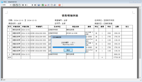 出現(xiàn)上圖提示信息窗口,一直處于正在準(zhǔn)備報(bào)表窗口無(wú)法導(dǎo)出Excel文件,原因是桌面已存在“亞拓軟件科技對(duì)賬單”Excel表格并且表格處于打開(kāi)狀態(tài),再次導(dǎo)出相同名稱的對(duì)賬單表格。