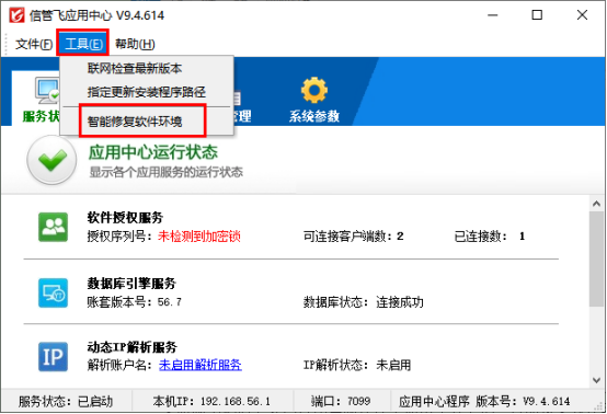 復(fù)制新電腦后,紅色應(yīng)用中心程序中點(diǎn)擊工具下的“智能修復(fù)軟件環(huán)境”,修復(fù)成功重啟即可正常使用軟件。