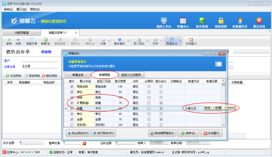 信管飛RMS(進銷存管理軟件)、信管飛送貨單軟件、信管飛倉庫管理軟件等開單默認是根據單價*數量自動計算得出金額,如有其他的數據計算需求,軟件也支持自定義計算公式,本篇文章以銷售出庫單為例介紹一下如何自定義平方的計算公式?