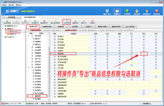 企業管理人員只需登錄信管飛軟件,在系統設置中輕松找到操作員及授權功能。在這里,能夠針對每個操作員進行個性化權限配置。當需要禁止某位操作員導出商品信息時,只需簡單幾步操作,將該操作員商品信息的“導出”權限勾選取消即可。