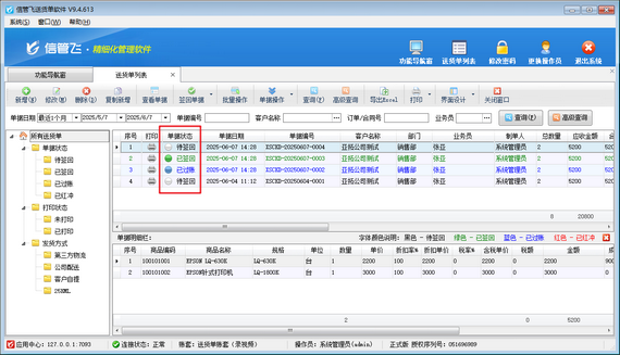 在商貿流通領域,送貨單作為貨物交接的核心憑證,其簽收與回執流程直接影響企業資金流轉效率與風險管控能力。信管飛送貨單軟件以智能化流程管理為核心,通過“待簽回-已簽回-已結賬”三階狀態控制,實現貨物交付全鏈路可視化追蹤,更以精細化權限管理功能,為企業筑牢運營安全防線。