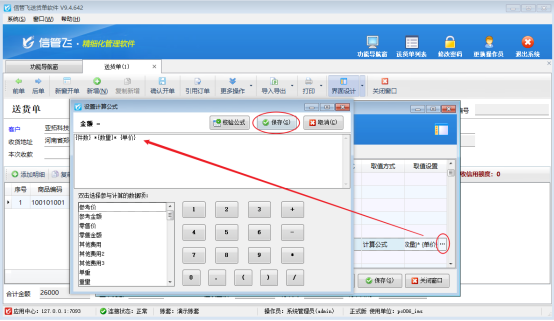 信管飛軟件支持在開單界面設置擴展數值來計算公式的使用,比如有些商品需要件數整箱數量單價來計算金額。為了使客戶對于金額不同計算場景,軟件更提供了自定義計算公式的功能。本文將以送貨單軟件為例,詳細介紹如何根據件數計算金額公式。