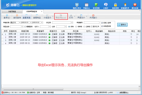此文章相關(guān)演示視頻:操作員無(wú)法導(dǎo)出采購(gòu)單明細(xì),如何解決?