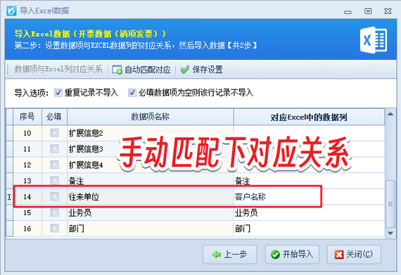 出現以上問題的原因是:表格內“客戶名稱”和軟件內“往來單位”名稱不一致,自動匹配對應關系時,無法自動匹配上。
