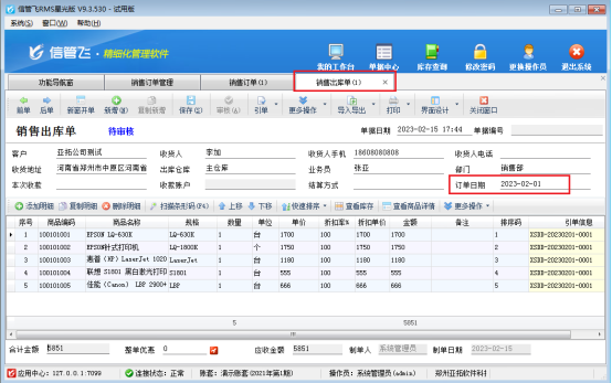 此文章相關演示視頻鏈接:銷售單引用訂單顯示訂單日期演示視頻 信管飛RMS軟件支持先開訂單,然后采購入庫單和銷售出庫單可以引用訂單的內容。有時候需要引用訂單的日期內容,可以銷售單等單據引用訂單的時候銷售單界面顯示引單日期內容。 以銷售單為例,如何引用訂單顯