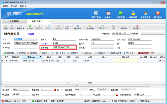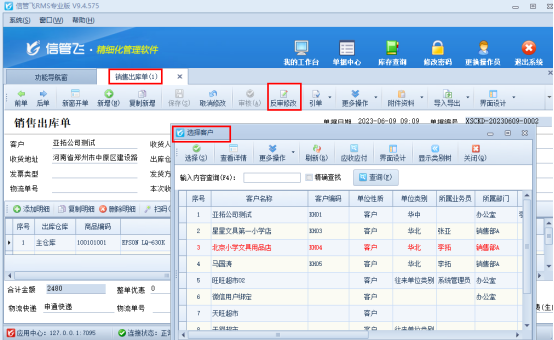 信管飛RMS軟件、信管飛送貨單軟件、信管飛倉(cāng)庫(kù)管理軟件等在開(kāi)銷(xiāo)售單時(shí)客戶(hù)名稱(chēng)可以直接輸入,也可以通過(guò)選擇錄入,開(kāi)單保存審核后,之前版本不允許修改往來(lái)單位名稱(chēng),造成客戶(hù)名稱(chēng)輸入錯(cuò)誤后只能重新開(kāi)單,最新版已更改為審核后允許修改往來(lái)單位名稱(chēng)和倉(cāng)庫(kù),如下圖所示:【注意】 修改往來(lái)單位名稱(chēng)和倉(cāng)庫(kù)后,對(duì)應(yīng)的應(yīng)收應(yīng)