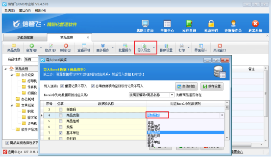 信管飛軟件支持通過Excel導入數據,通過Excel數據導入可以將數據方便快捷的導入到軟件中,省去了使用初期大量的數據的錄入所要消耗的時間及人力物力,并避免人為錄入的誤差,使數據錄入的簡單、準確、高效。下面我們以信管飛RMS軟件為例,示范下導入商品信息后,商品類別沒導入成功,如何解決? 方式一:刪除已