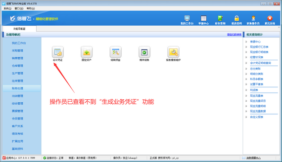演示視頻觀看鏈接:信管飛RMS如何設置操作員不可生成業務憑證演示視頻 信管飛RMS專業版包含財務處理功能,可登記會計憑證,支持直接對已開單據進行快速生成會計憑證操作,如下圖所示。為避免操作員誤生成會計憑證,軟件支持設置操作員權限,本篇文章介紹下如何設置操作員不可使用生成業務憑證功能? &nb