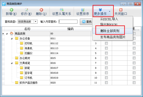 • 進銷存軟件內如何一次性刪除全部商品類別?