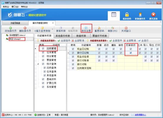 此文章相關演示視頻:操作員無法反審修改日記賬憑證,如何解決演示視頻     信管飛出納記賬軟件中支持反審憑證,憑證已審核后如發現填寫錯誤,可以反審憑證,反審后,憑證狀態恢復為未審核狀態,可以繼續對這個憑證進行修改操作,然而,部分用戶反饋,在使用操作員賬號登錄時,可能會遇到無法對已審核憑證執行反審并修改的問題。