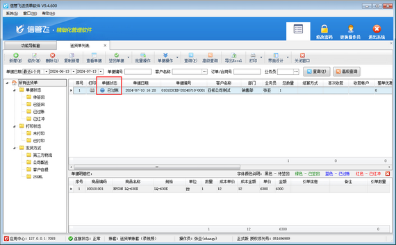 信管飛送貨單軟件通過狀態控制實現簡單的流程管理(待簽回—》已簽回—》已結賬),有用戶在過賬單據時,系統彈出提示信息“您沒有過賬單據的權限,請與系統管理員聯系!”,如下圖所示。    演示視頻觀看鏈接:操作員沒有過賬送貨單的權限,如何解決演示視頻    出現此問題的原因是:當前登錄的操作員賬號沒有過賬單