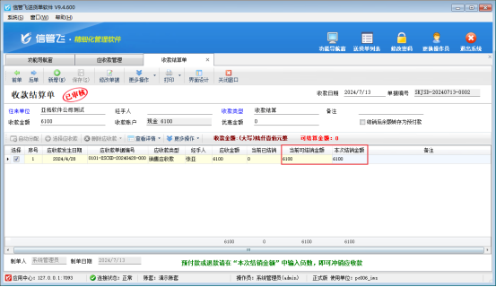 收款結算單用來登記收款信息(收款對象即客戶、收款賬戶、收款金額、經手人等),并結銷應收款記錄。正常情況下,應收金額為多少,即客戶支付我們多少貨款,但是部分情況下用戶在開單保存時出現提示信息該如何處理,本篇文章我們介紹下保存結算單提示“應收款列表中的本次結銷金額不能大于可結銷金額!”該如何解決?提示信息如下圖所示: