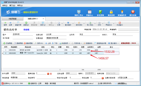 信管飛軟件不僅支持打印單據(jù)內(nèi)容,還允許用戶自定義設計打印模板以滿足個性化需求。針對部分用戶在打印模板時希望邊框加粗或應用其他樣式的需求,軟件內(nèi)提供相應設置功能。本文以“信管飛RMS為例”介紹下如何設置? 功能導航欄點“銷售管理”-》“銷售出庫單”,進入銷售單開單界面,開單保存預