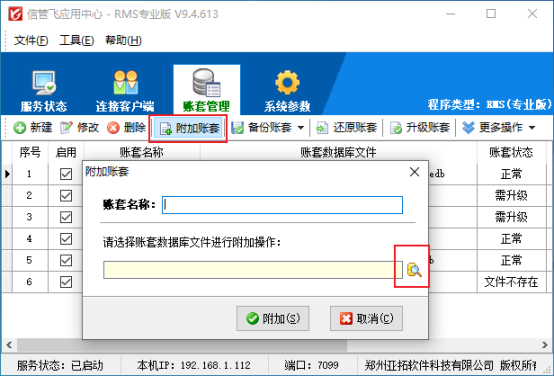 用戶使用軟件過程中,有時存在不正常退出情況,重新登錄軟件時提示“您要選擇的賬套無效或不存在”,應用中心程序打開賬套管理界面,賬套列表沒有賬套。出現(xiàn)此種情況需附加下賬套,我們可以通過附加賬套的方式把賬套文件進行附加進來,遇到在附加賬套界面選擇賬套文件路徑按鈕不顯示: 出現(xiàn)這個問題的具體原因是數(shù)據(jù)庫服務器