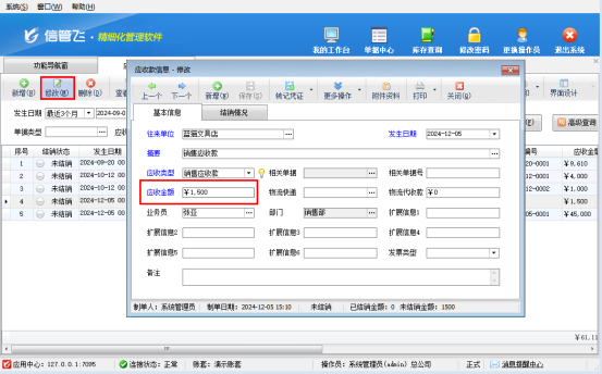 信管飛RMS軟件支持往來賬管理,可管理客戶和供應商的應收應付款,軟件有兩種管理應收應付款方式,一種是出入庫單據(jù)審核自動生成對應的應收應付款,另一種是使用軟件之前應收款可直接在應收款管理中新增。對存在金額錯誤需要修改應收款情況,軟件該如何操作? 一、單據(jù)生成的應收款修改