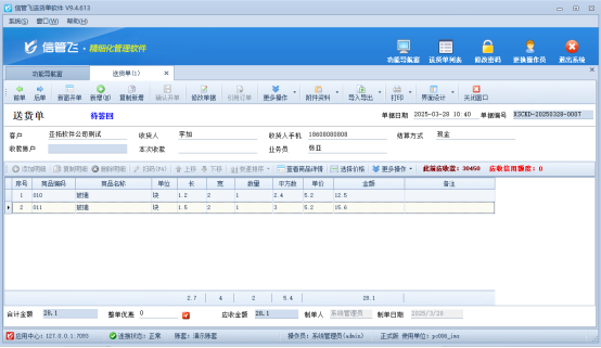 信管飛旗下進銷存軟件、送貨單軟件等支持設計打印模板格式,有客戶需要設置打印多頁單據(jù)時,設置每頁小計,最后一頁顯示總計,本文示范下如何設置打印模板。 觀看演示視頻,快速上手自定義打印模板設置方法。鏈接已備,點擊即學。 以“信管飛RMS”為例,打開一張送貨單