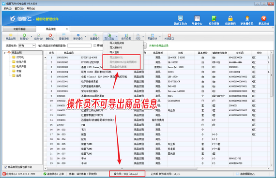 在企業(yè)的日常運營中,商品信息的安全至關重要,一旦泄露,可能會給企業(yè)帶來不可估量的損失。信管飛軟件敏銳洞察到這一需求,貼心提供可設置操作員不可導出商品信息的功能,為企業(yè)數(shù)據(jù)安全保駕護航。 以往,軟件中的商品信息可能因操作員權限設置不當而面臨泄露風險。有些操作員或許因疏忽或惡意,將商品信息導出并傳播,導致企業(yè)商業(yè)機密外泄。信管飛