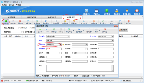 信管飛軟件支持登記客戶預(yù)付款,客戶預(yù)付款是客戶提前預(yù)付給我們的金額,可以用來沖銷銷售產(chǎn)生的應(yīng)收款,預(yù)付款抵消應(yīng)收款后多余部分需要退回給客戶,該如何處理? 如圖,客戶預(yù)付款是5000元,客戶送貨單消費(fèi)是3950元,預(yù)付款抵消銷售單應(yīng)收款多余1050元,多余金額需要退回給客戶。 &n