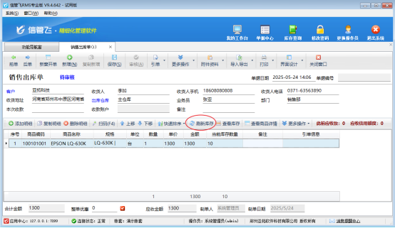 信管飛用戶在銷售出庫(kù)單界面中,選擇需要出庫(kù)的商品,并檢查其庫(kù)存數(shù)量是否已更新為最新值,可點(diǎn)擊刷新庫(kù)存操作,遇到出庫(kù)單界面沒有刷新庫(kù)存按鈕該如何處理? 在功能導(dǎo)航欄點(diǎn)擊“銷售管理”---銷售出庫(kù)單,打開銷售出庫(kù)單界面,在該界面點(diǎn)擊“界面設(shè)計(jì)”按鈕,在單據(jù)明細(xì)項(xiàng)勾選參數(shù)“當(dāng)前庫(kù)存數(shù)量”,點(diǎn)擊保