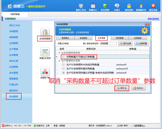 在采購業務里,不少客戶會先按需求開采購訂單,采購人員再依單采購入庫。但實際采購時,常出現采購數量大于訂單數量的情況,當出現這種情況后,部分客戶在進行開單時,會因系統限制,提示采購數量超限而無法保存單據。別擔心,信管飛RMS軟件能輕松化解這一難題! 簡單設置,開啟靈活采購 &nbs