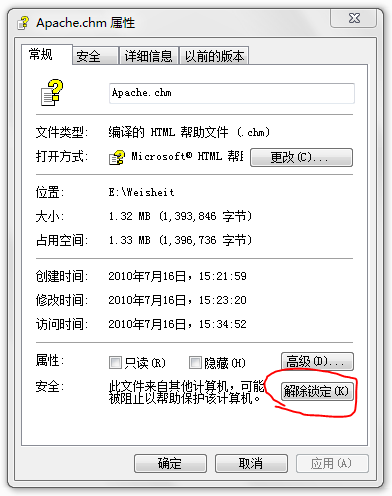 最近有用戶反映無法打開系統的幫助文件(CHM格式),出現空白頁面提示:已取消到該頁面的導航(IE8),如果是IE6會出現錯誤提示:取消操作,Internet Explorer 無法打開您請求的頁面。此問題是由于升級了微軟的一個補丁導致的,由于CHM文件容易為黑客利用,所有默認從網站上下載的CHM文件,會被鎖定。找到了原因,解決起來也很簡單:在CHM文件上右鍵,在彈出的菜單點“屬性”,然后在屬性窗口