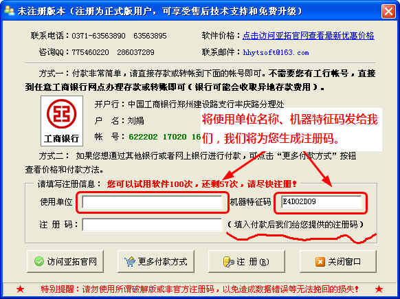 亞拓軟件的產品按照程序版本類型,主要分為:單機版和網絡版兩種。其中單機版只能一臺機器使用,而網絡版可以多臺機器同時使用,數據庫集中存儲在一臺機器上,實現數據的集中管理和協作辦公。一般單機版與網絡版的功能一樣,只是在同時使用的機器數量上有限制。按照“授權許可方式”,主要分為:注冊碼版和加密鎖(狗)版兩種,其中注冊碼是指系統根據每臺機器的特征碼(根據硬盤序列號、日期等信息生成),購買我們產品后我們會根