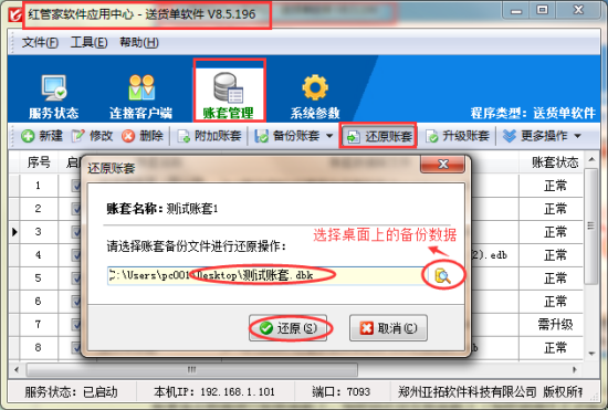 送貨單單機版指一人一臺電腦使用,使用時需要插入加密鎖,鑒于很多客戶有時候需要更換電腦使用,這次介紹下如何更換電腦使用。 送貨單單機版更換電腦需要首先把原來的電腦做好備份工作,備份是在電腦的應(yīng)用中心(紅色圖標(biāo))上進行操作。備份時可以選擇備份的保存路徑,為了更清晰的看到備份數(shù)據(jù)方便拷貝,可以把備份路徑更改
