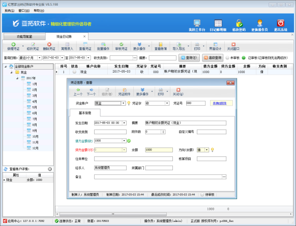 紅管家出納軟件是一款針對各類企事業(yè)單位財務(wù)出納記賬開發(fā)的,集現(xiàn)金日記賬記賬與點驗、銀行日記賬記賬與核帳、應(yīng)收應(yīng)付往來賬管理、票據(jù)管理(支票管理、承兌匯票管理)、發(fā)票管理、工資管理、員工借款管理、費用報銷管理等為一體的財務(wù)出納管理記賬軟件(出納管理軟件)。 許多用戶在使用軟件正式記賬之前都需要維護資金賬戶并錄入期初余