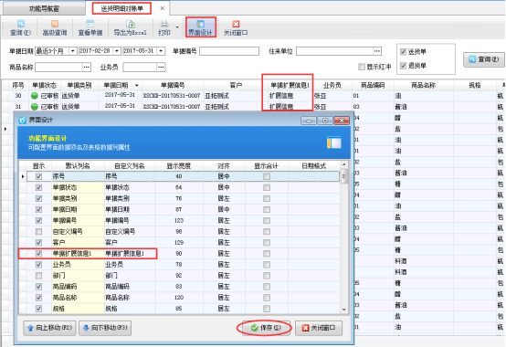 亞拓軟件下的送貨單軟件、亞拓管理軟件等最新版本增加在明細列表中可以顯示單據主體項的擴展信息。我們以送貨單軟件為例,示范下如何設置在送貨單的明細對賬單上顯示單據主體的擴展信息? 首先在需要先在開單界面中把單據主體中的“擴展信息”配置出來,在新增送貨單界面,點擊工具欄中的“界面設計”,選擇單據主體中的“擴