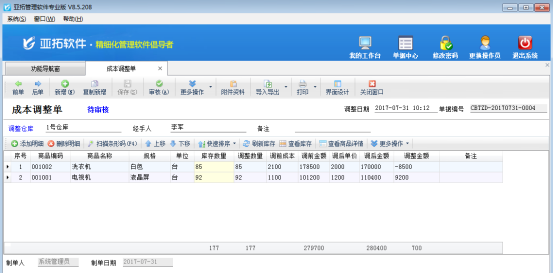 亞拓管理軟件(進(jìn)銷存軟件)支持負(fù)庫(kù)存開(kāi)單,如果商品不存在成本價(jià)會(huì)提示錄入成本價(jià),實(shí)際工作中有可能會(huì)出現(xiàn)錄錯(cuò)成本價(jià)的情況,導(dǎo)致最終在倉(cāng)庫(kù)庫(kù)存查詢中發(fā)現(xiàn)商品成本價(jià)異常。另外,在業(yè)務(wù)經(jīng)營(yíng)中有時(shí)也需要進(jìn)行優(yōu)惠性調(diào)價(jià)(節(jié)日或促銷活動(dòng)調(diào)價(jià))、季節(jié)性商品調(diào)價(jià)、政策性商品調(diào)價(jià)等,這些業(yè)務(wù)都可以通過(guò)“成本調(diào)整單”進(jìn)行價(jià)格調(diào)整。亞拓管理軟件標(biāo)準(zhǔn)版和專業(yè)版都包括成本調(diào)整單,我們以亞