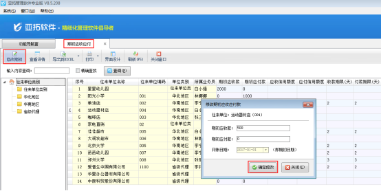 紅管家送貨單軟件包括應(yīng)收款管理功能,可以對(duì)客戶設(shè)置應(yīng)收信用額;亞拓管理軟件(星光版、標(biāo)準(zhǔn)版、專業(yè)版)包括應(yīng)收應(yīng)付款管理功能,可以對(duì)客戶及供應(yīng)商設(shè)置應(yīng)收應(yīng)付款信用額,另外,亞拓管理軟件標(biāo)準(zhǔn)版和專業(yè)版還可以在往來(lái)管理模塊中的“相關(guān)查詢統(tǒng)計(jì)”中進(jìn)行信用額度超限報(bào)警查詢。我們以亞拓管理軟件專業(yè)版為例,介紹如何設(shè)置往來(lái)單位的信用額度。