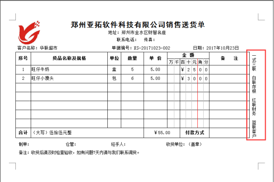 亞拓管理軟件、紅管家送貨單軟件、紅管家倉庫管理軟件都支持設置自定義打印模板,比如:三聯(lián)單打印模板,三聯(lián)單打印模板需要在右側顯示出每聯(lián)單的保存作用,以“一式三聯(lián) 白聯(lián)存根 紅聯(lián)財務 藍聯(lián)客戶”為例,示范下如何在三聯(lián)單打印模板中添加此字樣。 在紅管家送貨單軟件中,在功能導航窗選擇“業(yè)務處理”—》“新開送貨