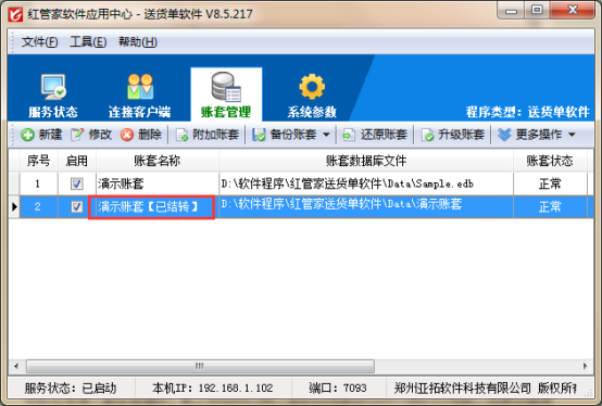 紅管家送貨單軟件、亞拓管理軟件等支持對賬套進行結轉新開賬操作。結轉新開賬一般用于年底結存新開賬,該結存操作不是必需的,如需要跨年查詢,可以不進行年結轉,軟件支持多年賬處理。     本篇文章以送貨單軟件為例,示范下如何對賬套進行結轉新開賬,新架構版本送貨單結轉新開賬功能在應用中心程序—》賬套管理—》