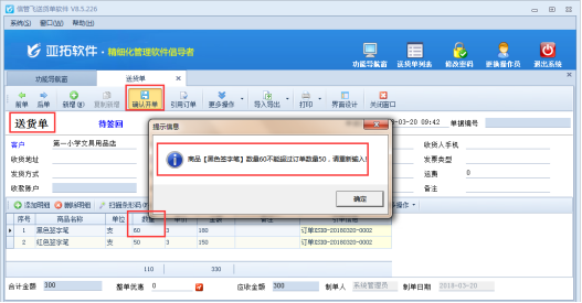 許多用戶的銷售送貨流程如下:客戶先下訂單,訂單下好后,根據訂單進行開送貨單送貨。信管飛送貨單軟件支持開送貨單直接引用訂單,調取訂單中的數據。送貨單引用訂單數據后,可以對引用數據內容進行修改,其中送貨數量是否可以超過訂單數量,支持在軟件中設置參數。下面我們以信管飛送貨單軟件為例介紹下在軟件中如何設置“送貨數量不可超過訂單數量”。